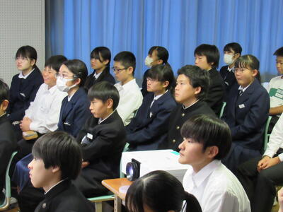 〇初めて聞いたベンチャーキャピタルの仕事内容やその仕組みなどを分かりやすく教えていただいて、まだまだ知らないことがたくさんあることを実感しました。また、中学生の私たちへのアドバイスをもらい、これからの受験に行かしていきたいと思いました。今後は、これからの受験勉強は80%理解できるように計画を立てて実行し、なぜ間違えたか、しっかりと考えられるよう努力したいです。(荒井さん 2年)