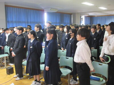〇人生は多くの選択があり、その中には少ないけどチャンスがあると教えてくださりありがとうございました。周りとは違うことを自分がしていても自分の気持ちを大切にし、がむしゃらに生きていくことが大切だと教えてくれてありがとうございました。今後は、人生の中でのチャンスはとても少ないので、チャンスを見逃さずに自分の気持ちを大切にし、がむしゃらに人生を頑張りたいです。(小倉さん 3年)