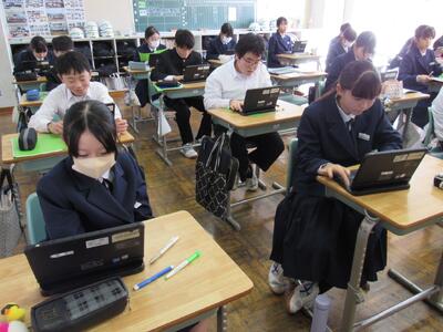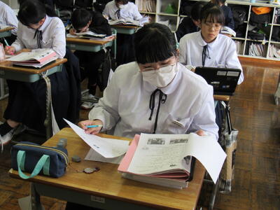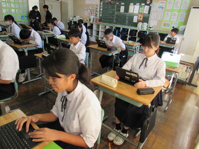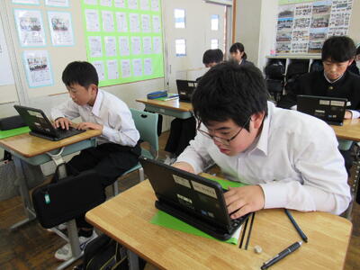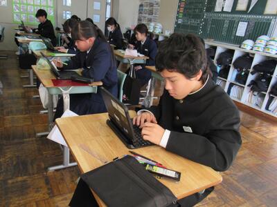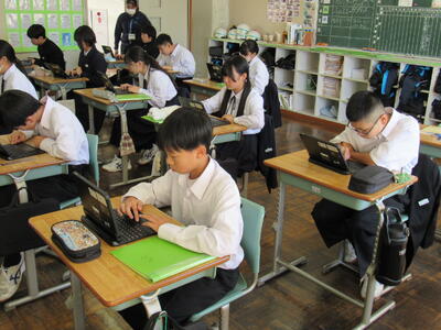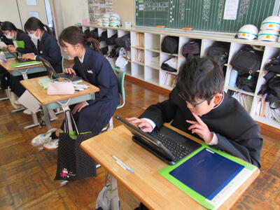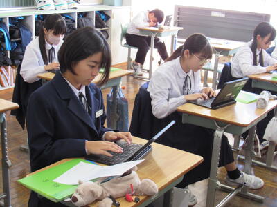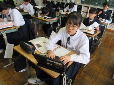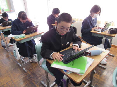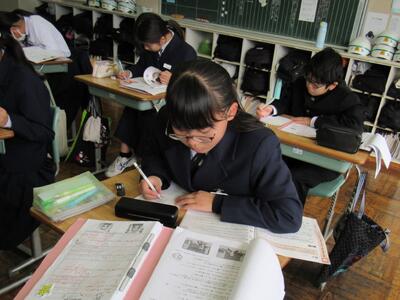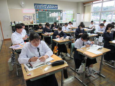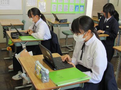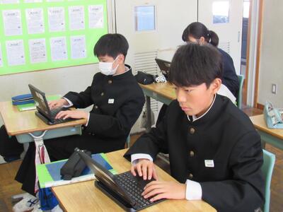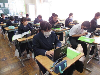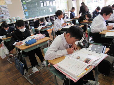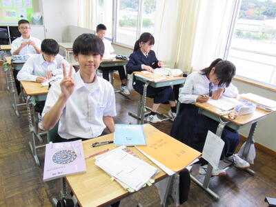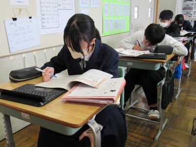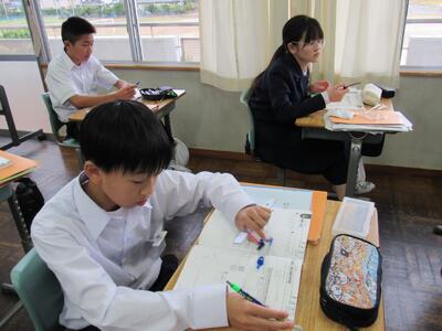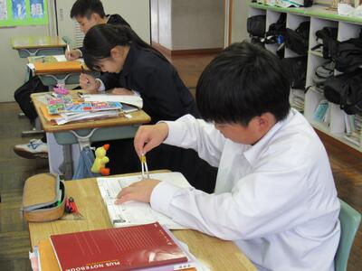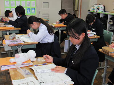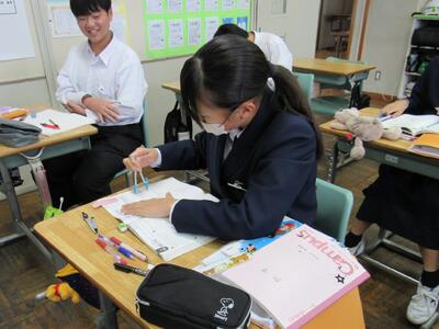 1年生の授業(1組:総合・数学、2組:総合・音楽)の様子です。