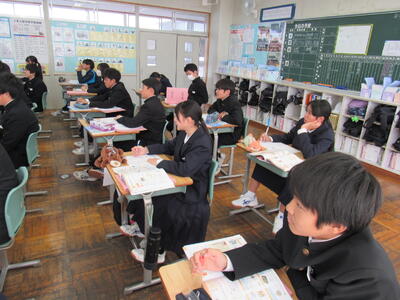 2年生の授業(1組:学活・数学、2組:技術・英語)の様子です。