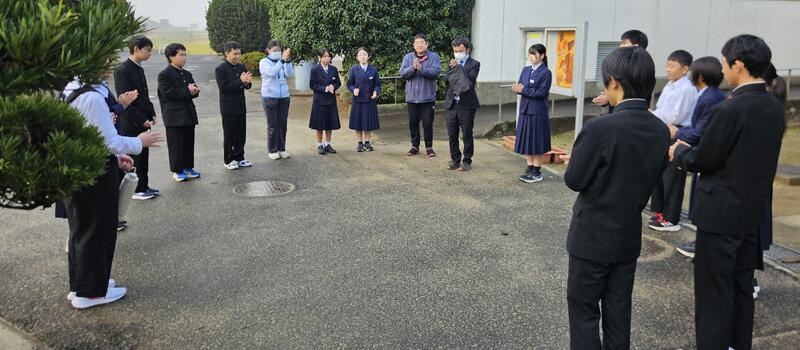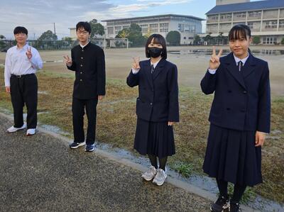 朝の挨拶運動の様子です。生徒会本部と生活委員が中心になって声掛けを行ってくれています。生徒の皆さん、社会に出ると挨拶は本当に大事です。挨拶は自分から先にできるように心掛けていきましょう。