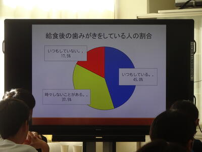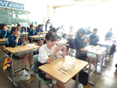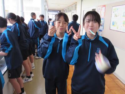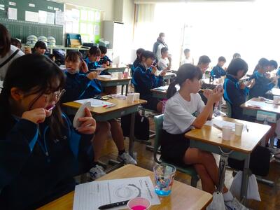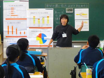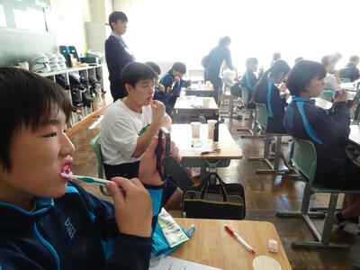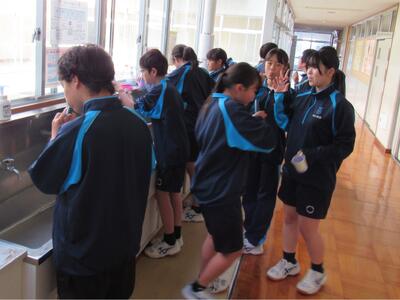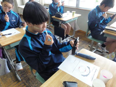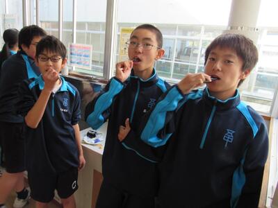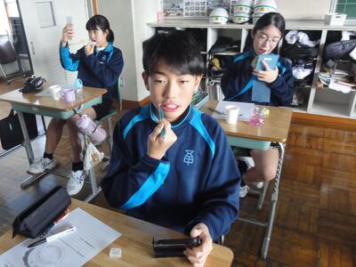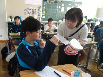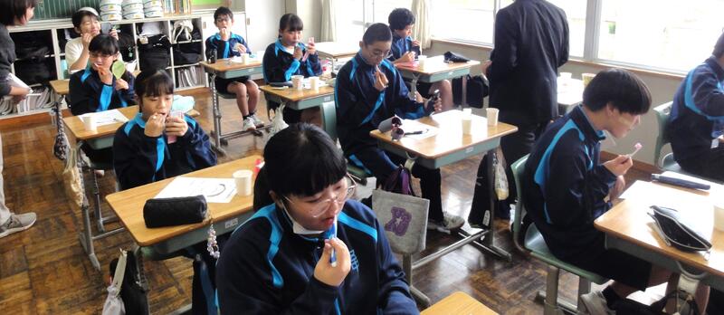 1・2年生を対象に歯磨き教室(歯肉炎予防についての学習)を実施しています。歯肉炎は、日本人の歯を失う原因第1位です。生徒の皆さん、日頃の歯磨きに加え、歯科医院での専門的なケアを行って、歯肉炎を予防しましょう。 ※3年生歯磨き教室の様子←クリック