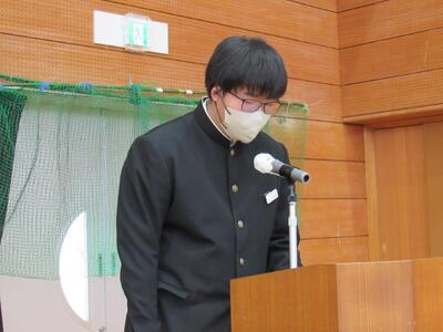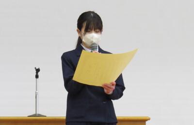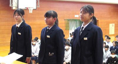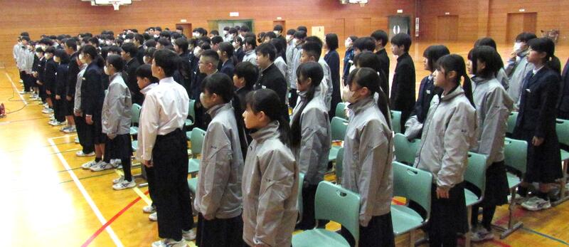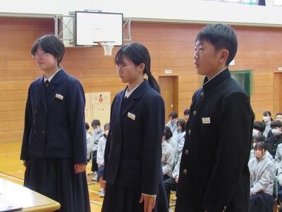 令和8年初めの全校集会が行われました。校歌斉唱の後、各学年代表生徒から新年の抱負が発表され、思いをしっかりと伝えることができました。生徒の皆さん、自分の抱負を具体的にしっかり持って、新年をスタートしましょう!