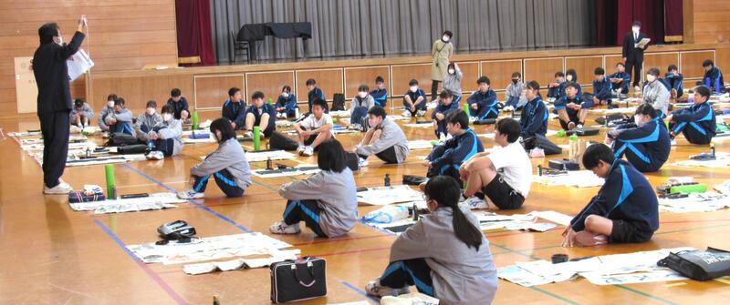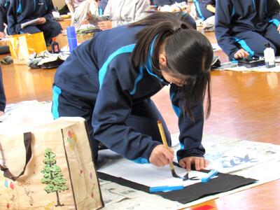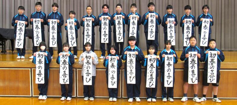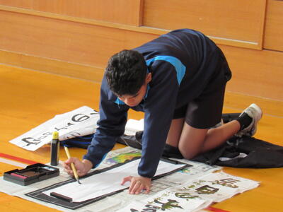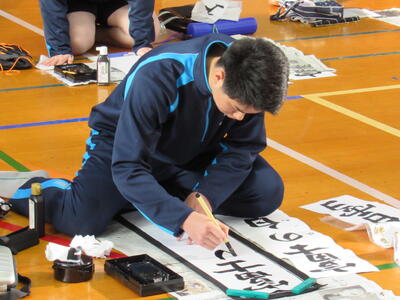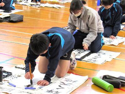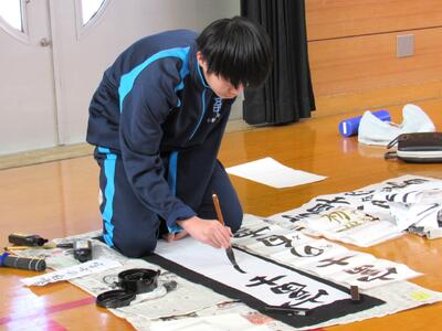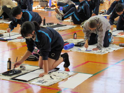 生徒の皆さん、日本文化の一つ「書き初め」の経験を大切にしてください。