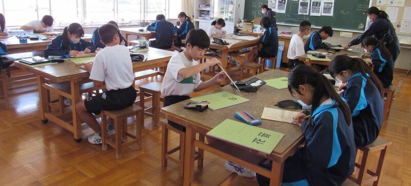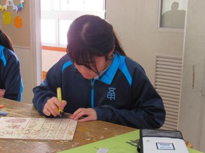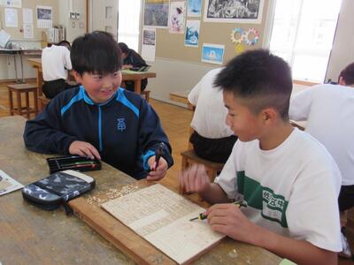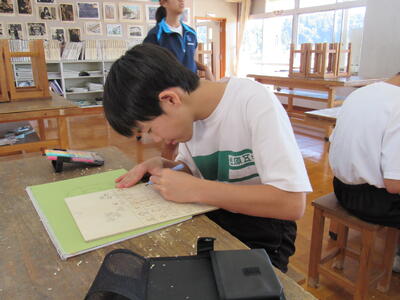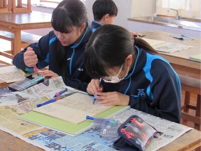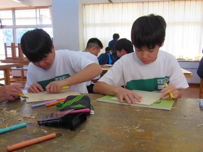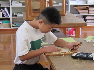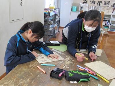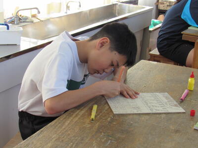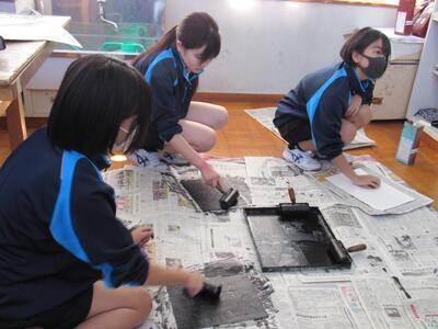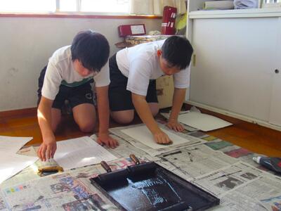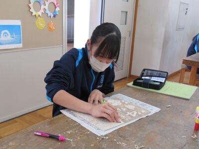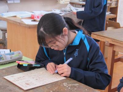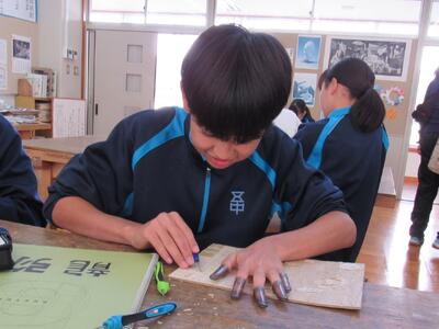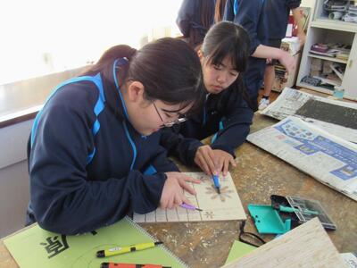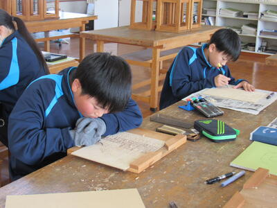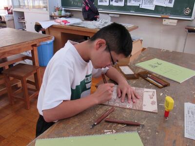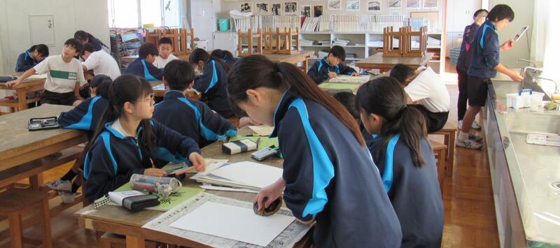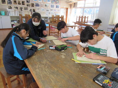 版画でのカレンダー作りに取り組んでいます。手先の器用さを発揮している生徒が多くいます。