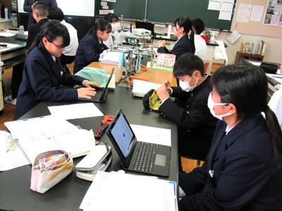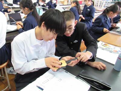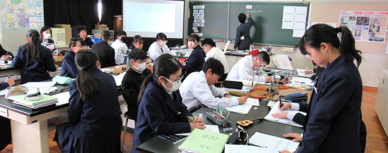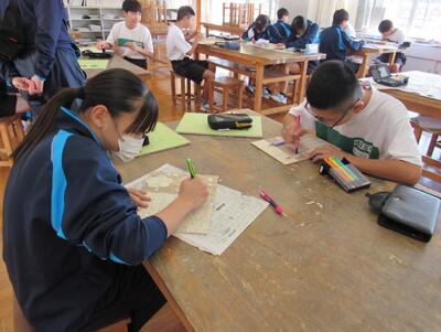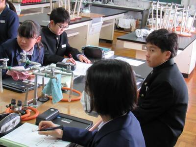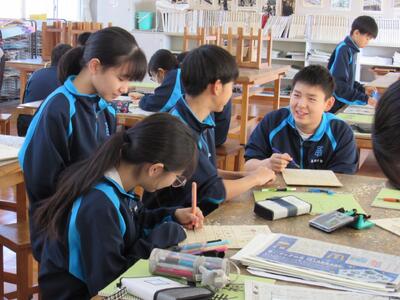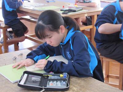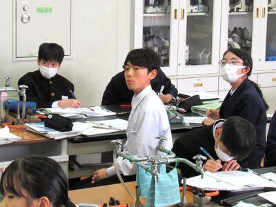 1年生の授業(1組:美術、2組:理科)の様子です。