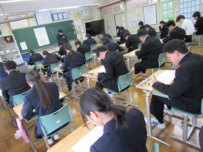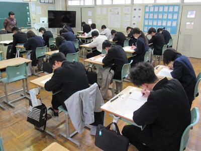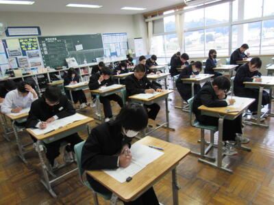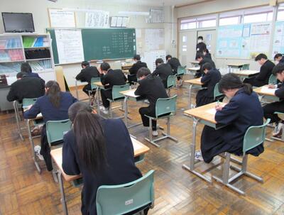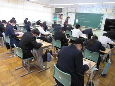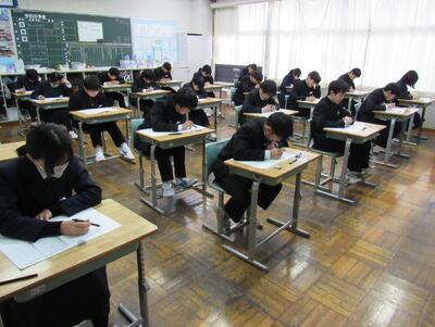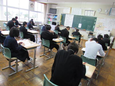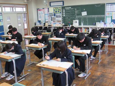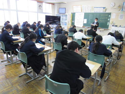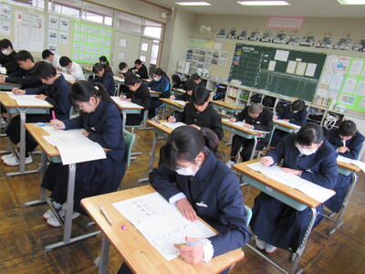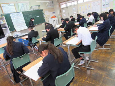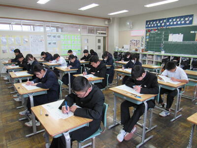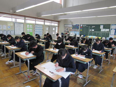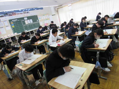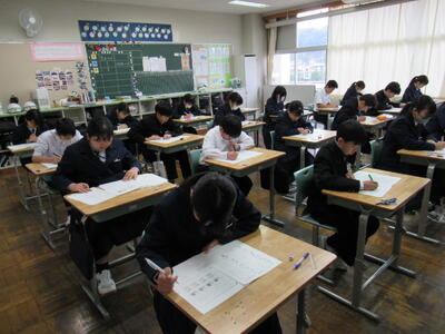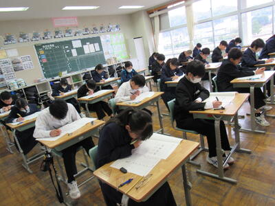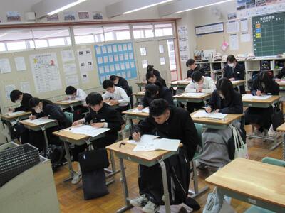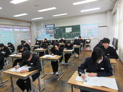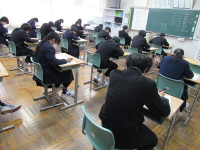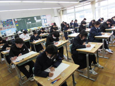 1月6日(水)、7日(木)全校実力テスト(6日:国・数・英、7日:理・社)が行われました。3年生は最後の実力テスト(第6回)なので、かなり集中して取り組んでいました。3年生の皆さん、入試に向けて本気のラストスパート、頑張ってください。