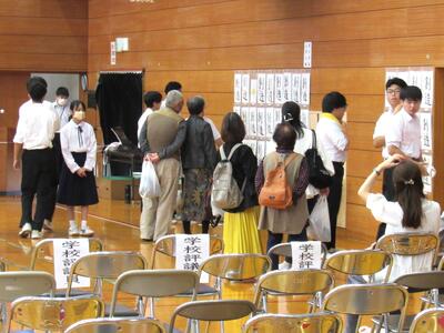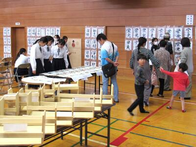 また、展示では芸術部の作品や美術科絵画作品、技術家庭科作品、科学工夫作品が展示されています。日頃の学習や活動の成果を発表する場でもあり、互いに鑑賞できる場でもあります。文化や芸術に親しみ、充実した機会にしてもらいたいと思います。