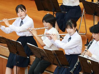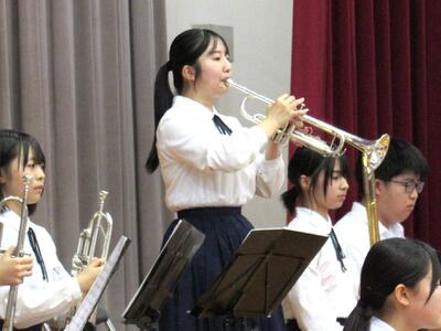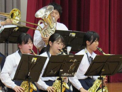 吹奏楽部の皆さん、すばらしい演奏でした。3年生は今日で引退ですが、吹奏楽を一生の宝にしていってください。