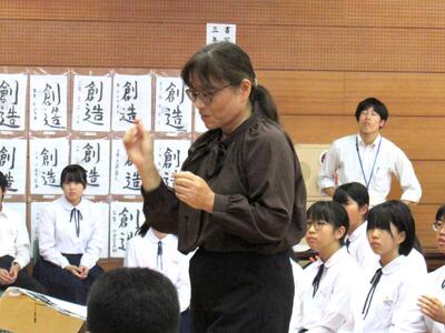 国語で書写に取り組んでいます。生徒の皆さん、心を落ち着けて集中して取り組むことで、丁寧な字が書けるようになりますので、頑張ってください。