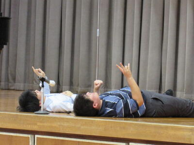 生徒会本部による学年別クイズです。「この先生は誰でしょう?」かなり特徴をとらえていました!