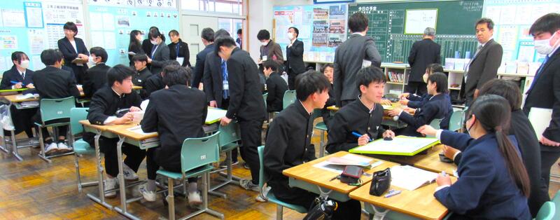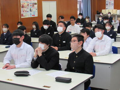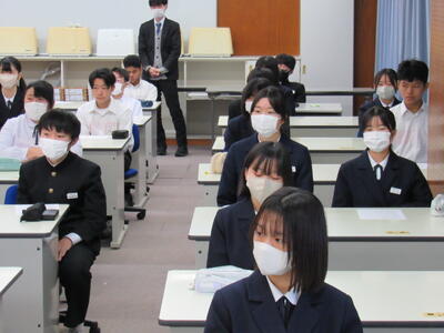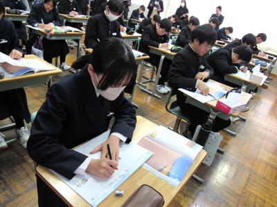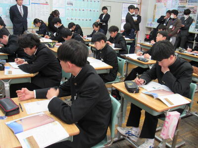 1月17日(土)から始まる私立高校入試に向けて、事前指導を行いました。校長から励ましの言葉の後、学年主任の話で入試に向けて具体的な内容を確認しま した。その後、高校別に流れの最終確認をして気を引き締めました。3年生の皆さん、今まで培ってきた学力を全力で注いでください。
