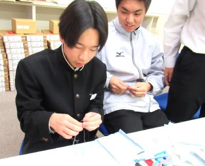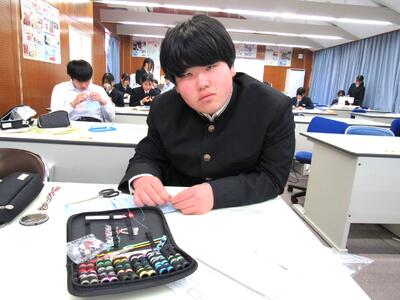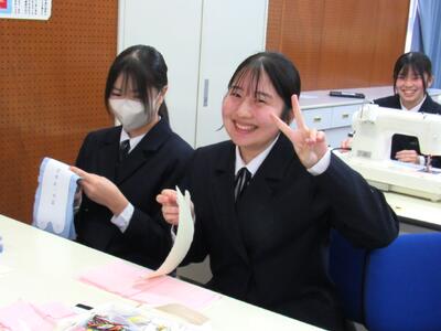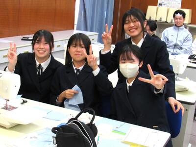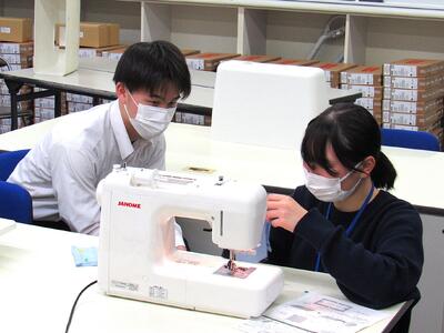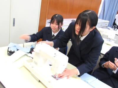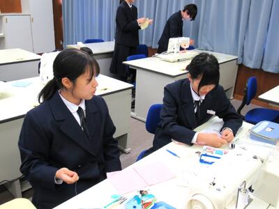 家庭科で裁縫に取り組んでいる様子です。一人一人集中して、手先の器用さを発揮しています。