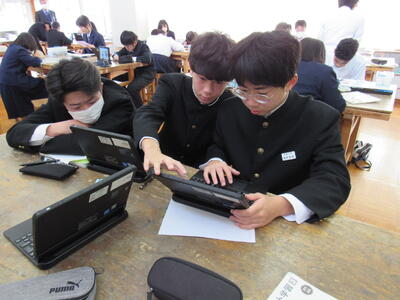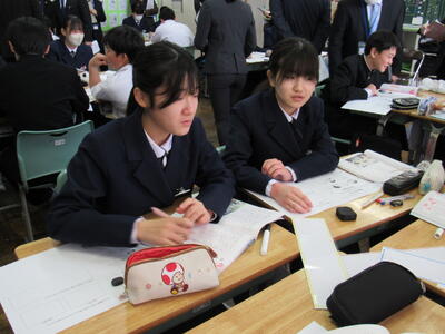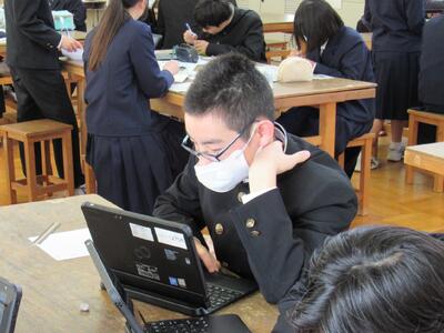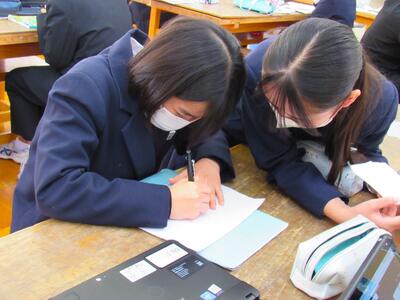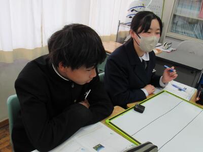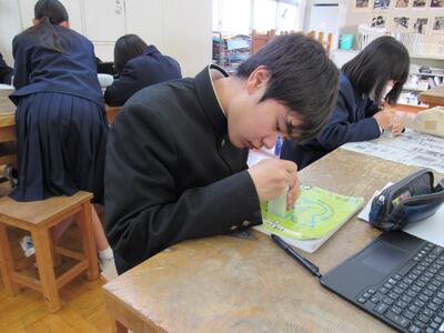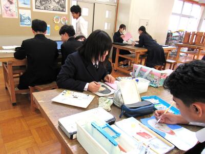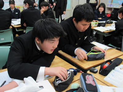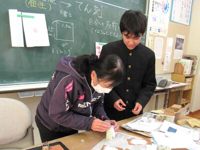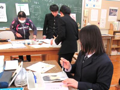 3年生の12月末の授業(1組:家庭科、2組:美術)の様子です。