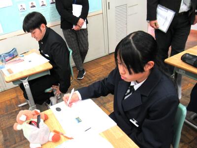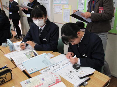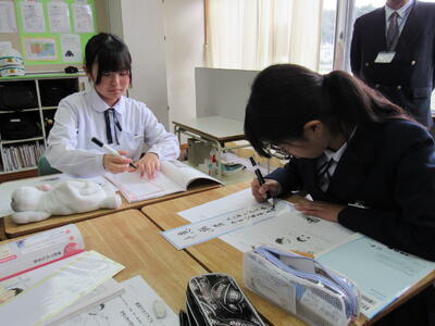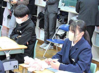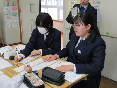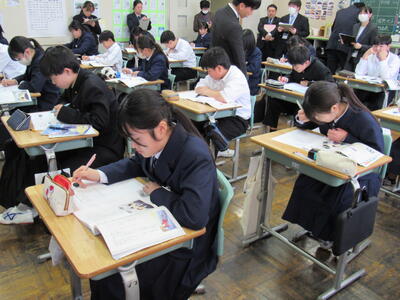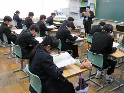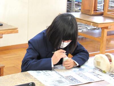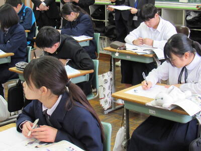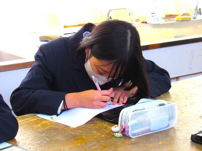 私立高校入試事前指導(3年)、授業の様子(3年家庭科・美術)