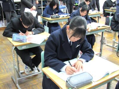 私立高等学校の入試が始まり、本校からは1月17日(土)18日(日)19日(月)の3日間にわたり早朝から受験に向かいました。受験生の皆さん、個々の目標に向けて一人一人よく頑張っています。今後とも体調には十分気を付けて、公立高校選抜に向けて学力の更なる伸びを発揮してほしいと思います。