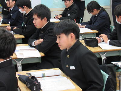 1年生の授業(1組:音楽、2組:理科)の様子です。生徒の皆さん、新年2026午年、心新たに授業に集中して取り組んでください。
