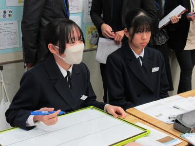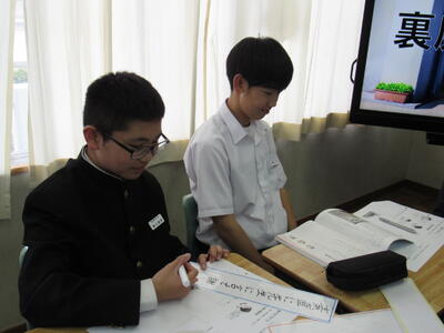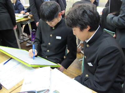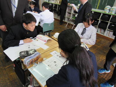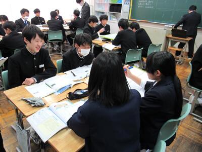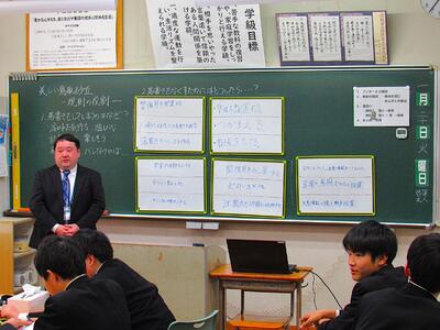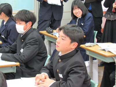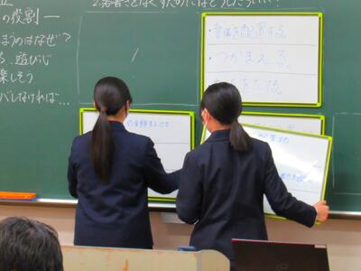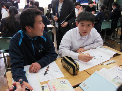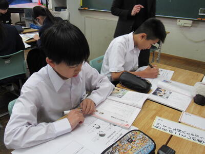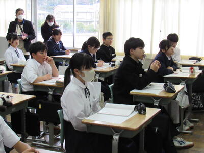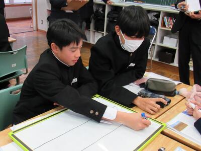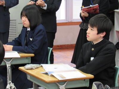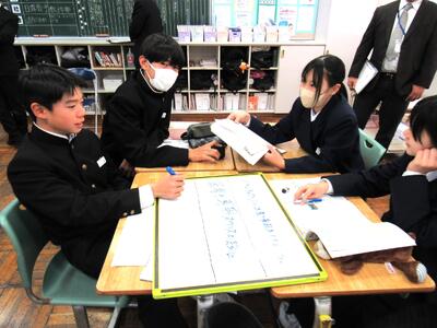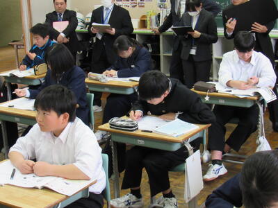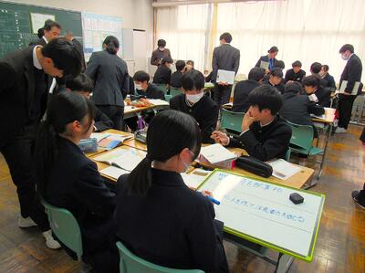 1月20日(火)道徳科の校内研究会を1年1組、2年2組で行いました。北総教育事務所から講師(都祭指導主事)を招き、授業に対して指導・助言をいただきました。自分の意見をしっかり発表したり、他の意見を認め合ったりする場面が多く見られました。