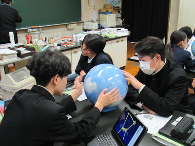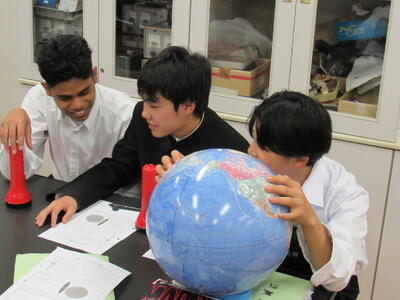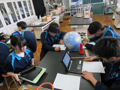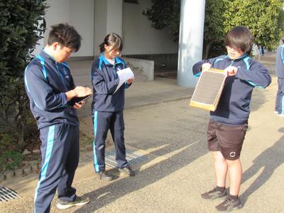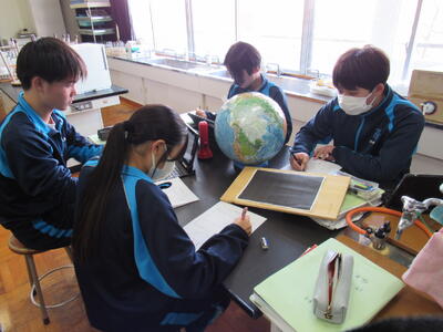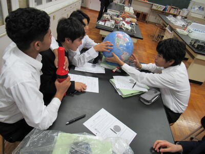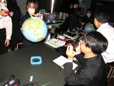 プレイバック 授業の様子(3年 理科) 投稿日時 : 12/25 五中管理者 カテゴリ:今日の出来事 3年生理科の授業の様子です。天体の学習に取り組んでいます。 【3年1組】 太陽放射の量が南中高度によって変わることを、実験で確認しています。 【3年2組】 地球、太陽、星座の位置を実際に確認しながら学習を深めています。