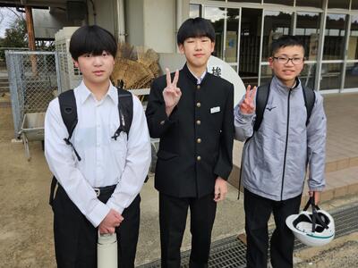 生徒会の提案により始まった「逆・挨拶運動」です。火曜日~金曜日の朝、各学級から2名ずつ参加して、登校する仲間に声を掛けています。(生徒会本部・生活委員会も挨拶運動実施中)