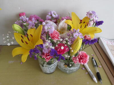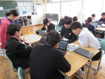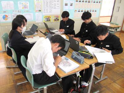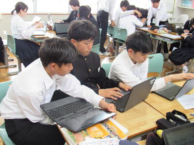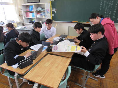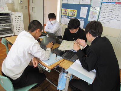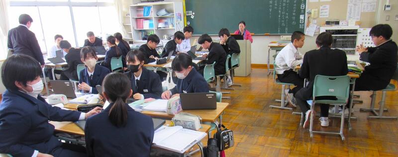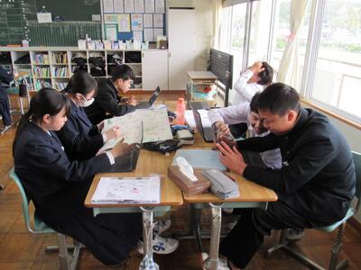 季節の生け花・授業の様子(3年総) 投稿日時 : 04/16 五中管理者 カテゴリ:今日の出来事 玄関等に大戸地区の坂下さんや橋本さん(四季の丘)が定期的に季節の花を生けてくれています。本当に有り難いことです。生徒の皆さん、足を止めて季節の花々に心を和ませてみてはどうでしょうか。 〇前回の生け花の様子←クリック こでまり、フリージア、大紫(ツツジ) こでまり、フリージア、水仙 3年生の授業の様子です。総合的な学習の時間で、修学旅行(京都・奈良方面)の計画を立てています。今回は、班別学習2日目を班ごとに相談しています。 【3年1組の様子】 【3年2組の様子】