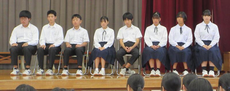 新本部役員8名の皆さん、佐原第五中学校をよりよくするために、熱い思いで頑張ってください。生徒の皆さん、本部役員に協力して生徒会活動を盛り上げていきましょう。