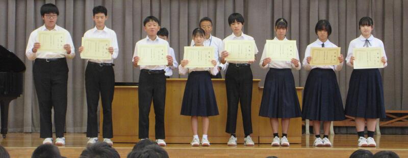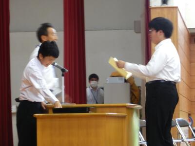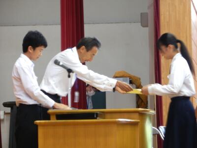 10月10日(金)前期終業式の前に賞状伝達及び披露を行いました。多くの生徒が、様々な場面で活躍しています。生徒の皆さん、今後とも新たな目標を明確に決めて頑張ってください。