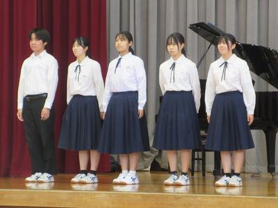 10月10日(金)前期終業式が行われました。各学年の代表生徒から、前期の振り返りと後期に向けての抱負が発表されました。皆さん、自分の思いをしっかりと伝えることができました。