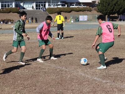1月10日(土)、11日(日)天野杯中学校招待サッカー大会が、小見川中学校を会場に開催されました。1日目予選リーグでは、神崎中・佐原中合同チームに0-0の引き分け、横芝中・横芝光中合同チームには1-2で敗退しましたが、得失点差で2日目の決勝トーナメントに進めました。2日目の準決勝は、小見川中・東庄中合同チームに1-2で敗退、結果は3位でした。後半途中まで1-0で勝っていましたが、力及びませんでした。敢闘賞には、潮田さん(2年)が選出されました。選手の皆さん、今大会の経験をバネに冬季練習に励んでください。一人一人の頑張りに期待しています!