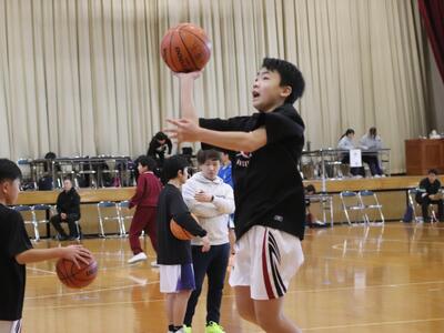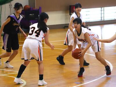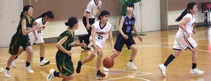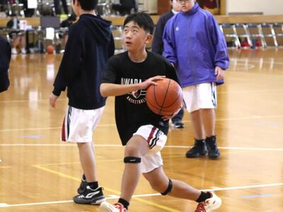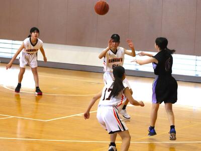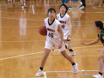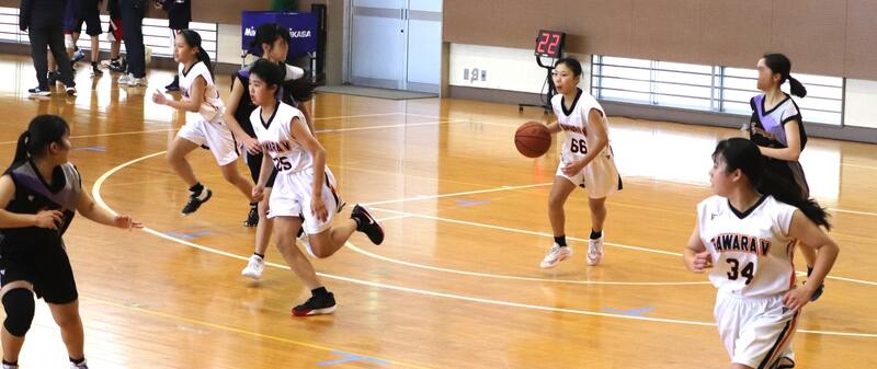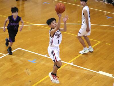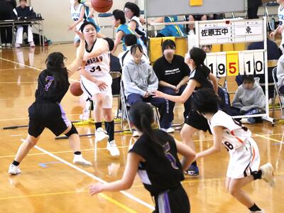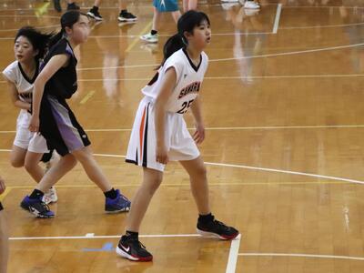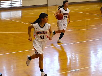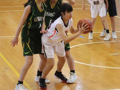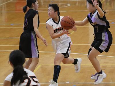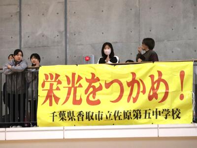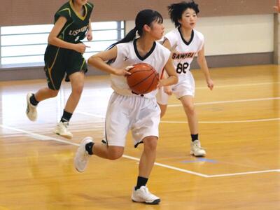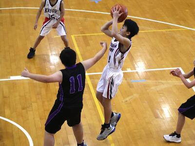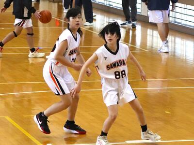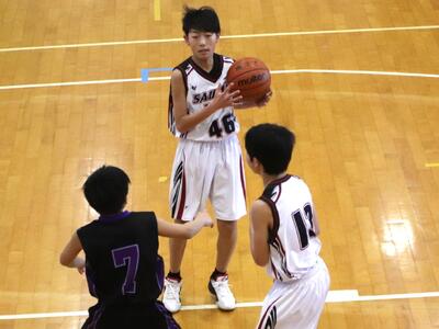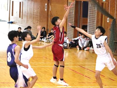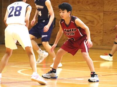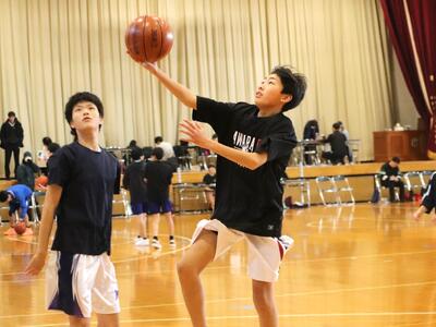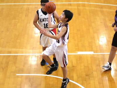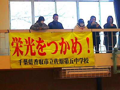 1月10日(土)、11日(日)に水郷ジュニアバスケットボール大会が、小見川中学校と佐原中学校を会場に行われました。1日目、男子(佐原第五中・東庄中・香取中合同チーム)は1回戦で牛堀中(茨城県)に勝ち、2日目の準決勝に進みました。女子は1回戦で、東中(茨城県)に勝ちましたが、2回戦で牛堀中に敗退しました。2日目、男子は準決勝で佐原中に勝ち、決勝は小見川中と対戦し敗退、結果は準優勝でした。