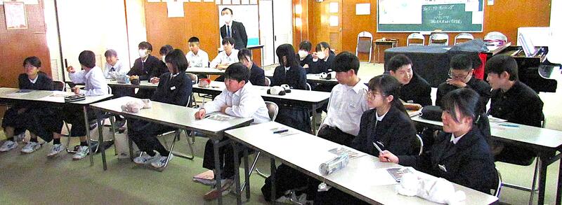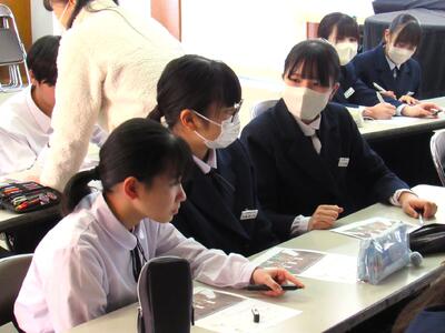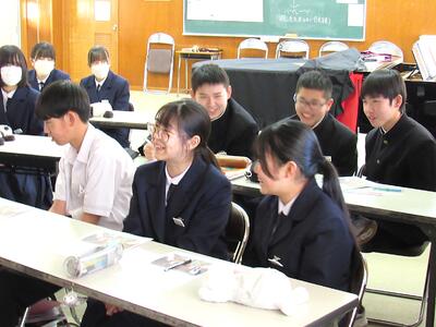 〇私の今やりたいことはまだ明確に決まっていなかったけど、先生の話を聞いて「まだ、私はいろいろな仕事を知らないのか」と実感しました。自分の好きな分野を大学などでもっと理解を深めて、その分野・関連の職業に就くことも楽しそうで、私は自分自身の得意分野を将来に生かしたいと思いました。今後は、受験を控えているので、今やるべきことをしっかりして、自分自身の好きなことを生かせるような道を開きたいと思いました。(本城さん 3年)