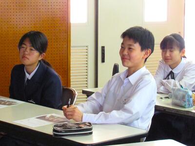 〇感謝を忘れないことや、いろいろなことを大切に思うことができる等、基礎となることを大切にすることを学びました。自分の好きなことを最後までやり通すことが、とてもかっこいいと思いました。今後は、片田江さんが言っていたように、キャリアの構築は選択の積み重ねなので、単なるAとBを選ぶのではなく、先を見据えて選んでいきたいです。(鈴木陽さん2年)