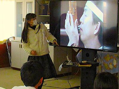 音楽で鑑賞の学習に取り組んでいます。日本の古典音楽である雅楽「越天楽(えてんらく)」について、様々な音を聞きながら学んでいます。越天楽は、毎年、お正月になると神社やテレビでよく耳にする雅楽です。