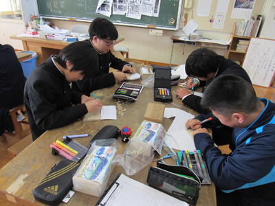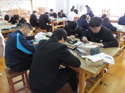 2年生の授業(1組:美術、2組:技術)の様子です。