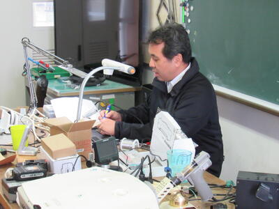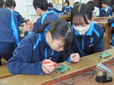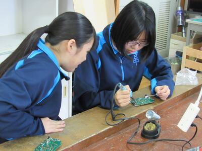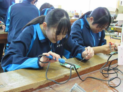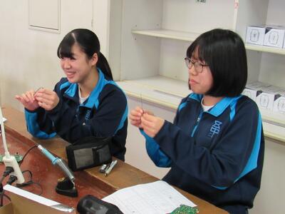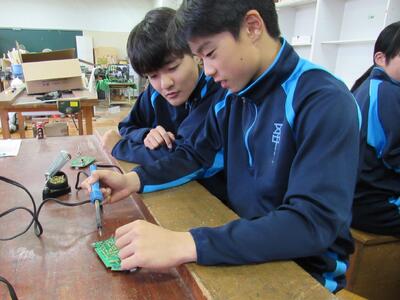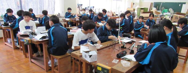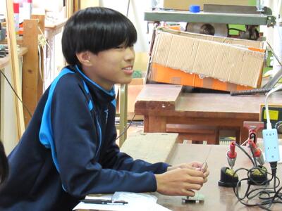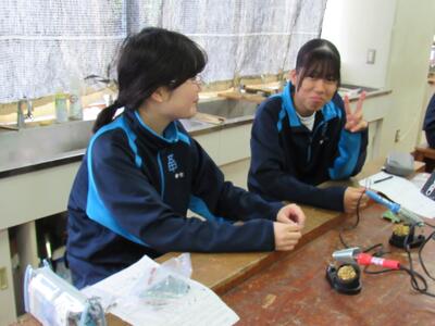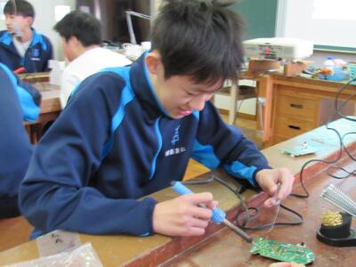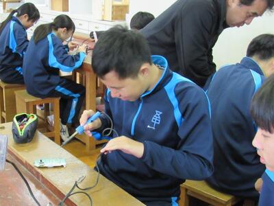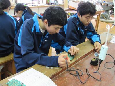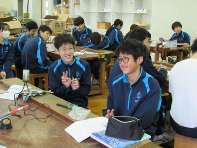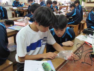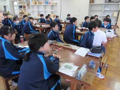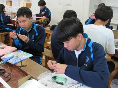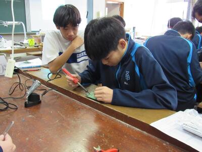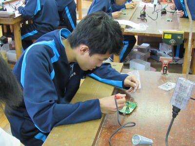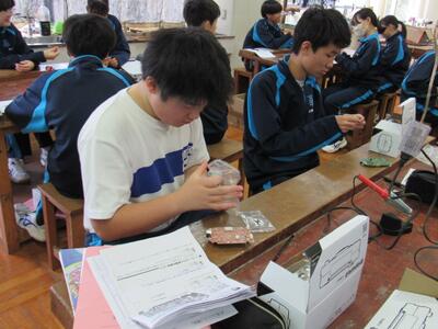 エネルギー変換の学習で、LEDライト作成の実習をしています。