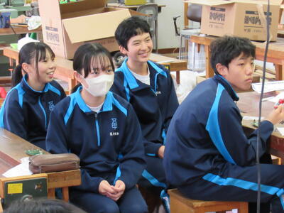 2年生が総合的な学習の時間にキャリア教育の授業を行い、県教育委員会等から5名の先生が参観されました。将来の職業について、多面的・多角的に捉えるよい機会となりました。