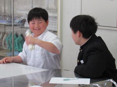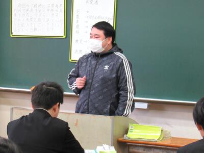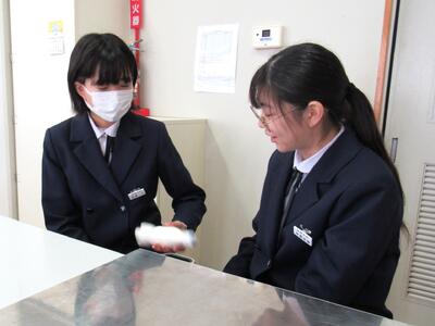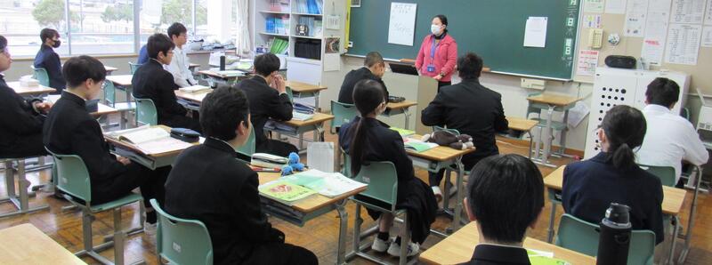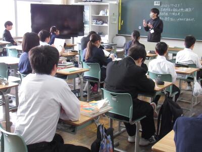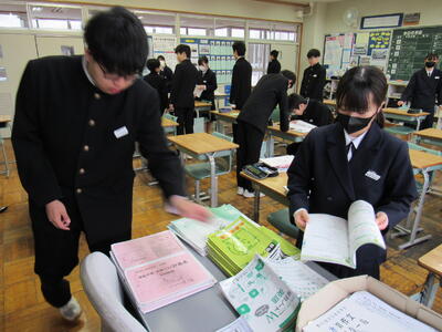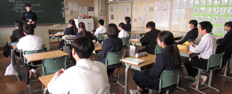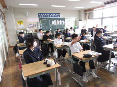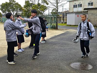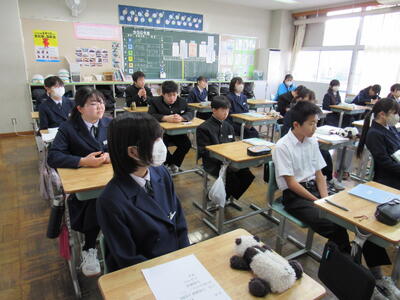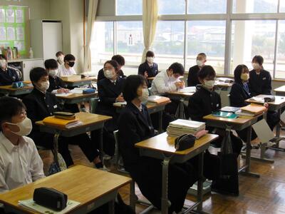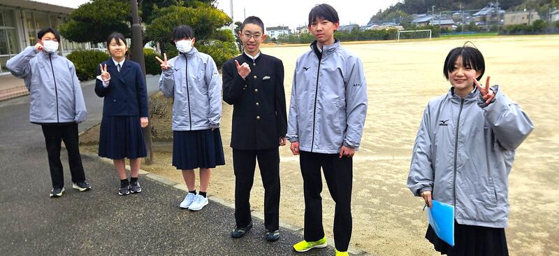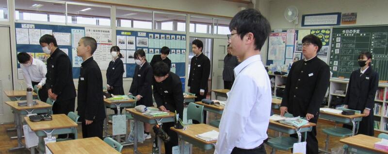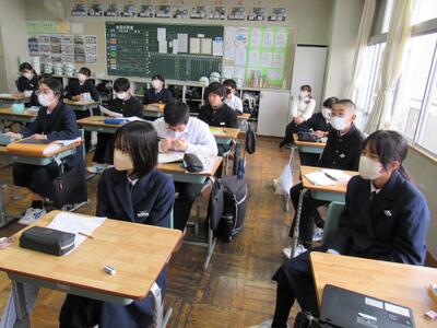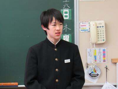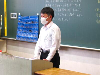 生徒会の提案により始まった「逆・挨拶運動」です。火曜日~金曜日の朝、各学級から2名ずつ参加して、登校する仲間に声を掛けています。(月曜日は、生徒会本部・生活委員会が挨拶運動実施中)