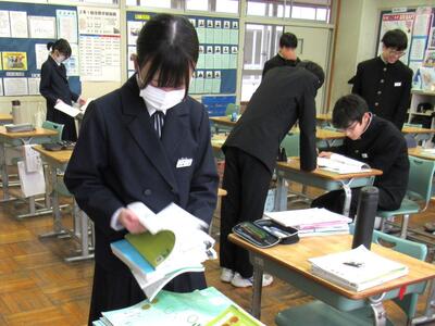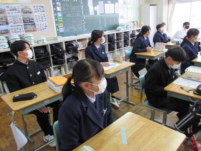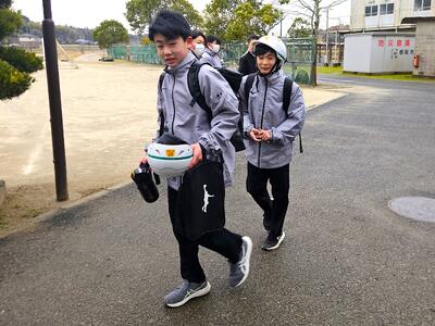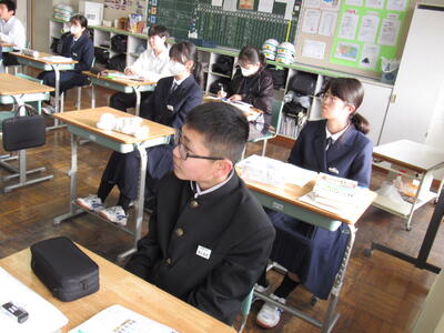 3年生が卒業記念の調理実習として、3校時に3年1組、4校時に3年2組が、それぞれ「いももち」づくりに取り組みました。短い時間でしたが、仲良く協力して調理~食事~片付けまで行い、よい思い出になりました。