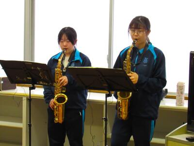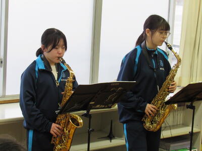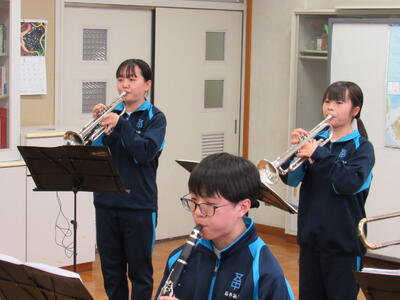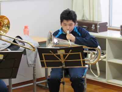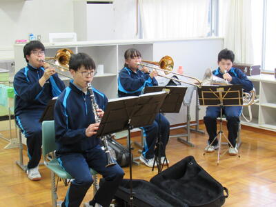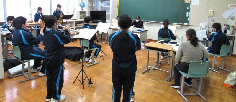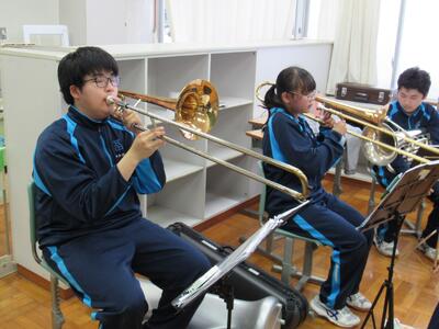 放課後の部活動の様子です。今回は、吹奏楽部を紹介します。一人一人が音程、テンポ、音色、ハーモニーに等を意識しながら、意欲的に取り組んでいます。