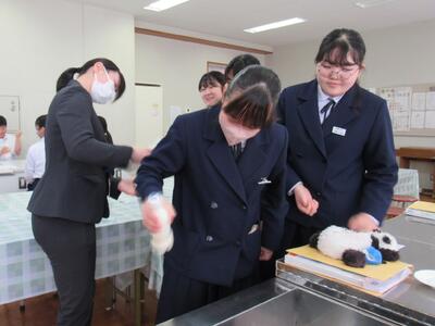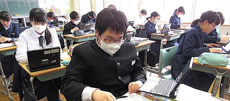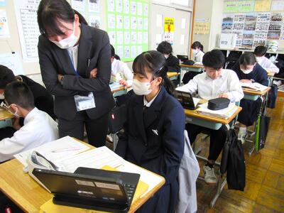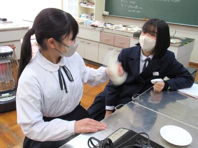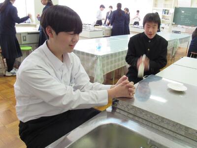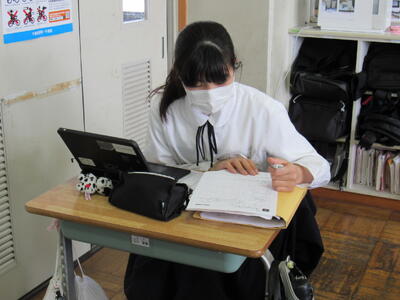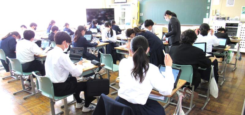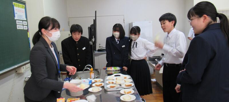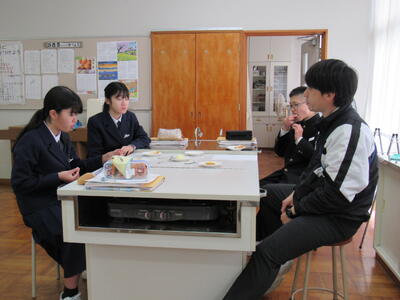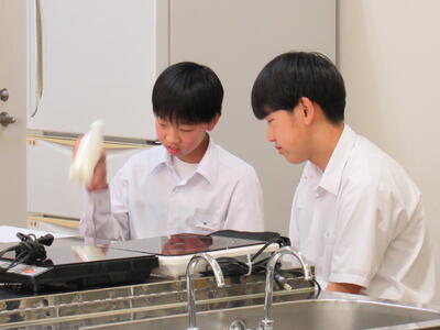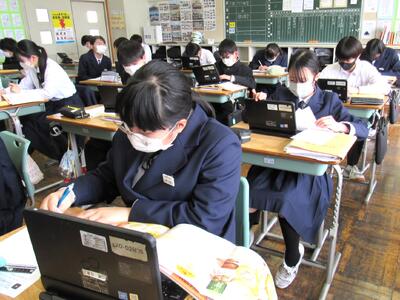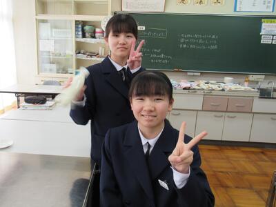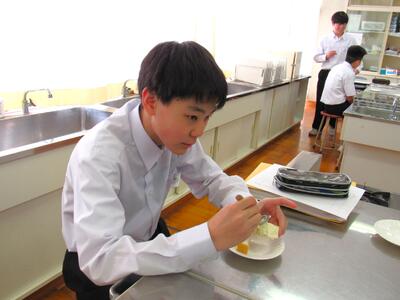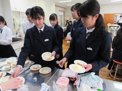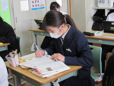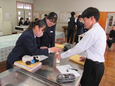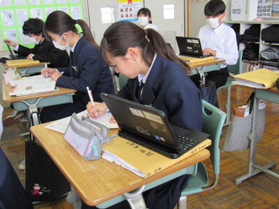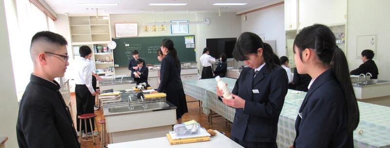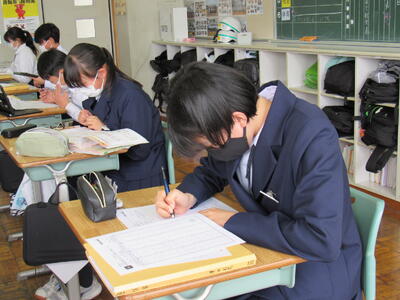 1年生家庭科の授業です。皆さん、興味深く取り組んでいます。将来、健康な生活を維持するために、食育はとても大事です。習ったことを、家庭でも有効に活用していきましょう。