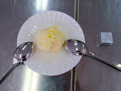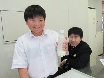 手作りバターづくりに楽しく取り組んでいます。ペットボトルに生クリームを入れてシェイクし、脂肪分と水分を分離しています。試食では、市販のバターと味比べです。