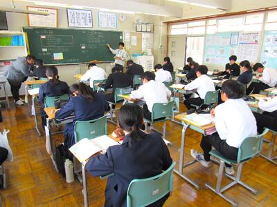3年生の授業(1組:理科、2組:数学)の様子です。