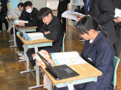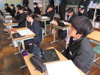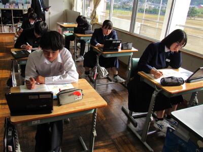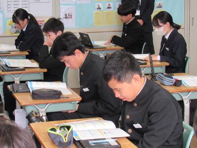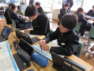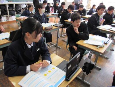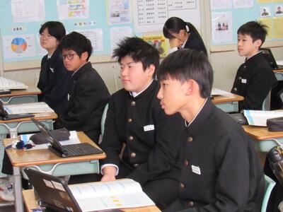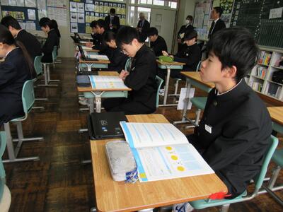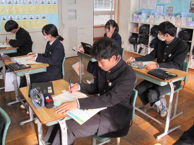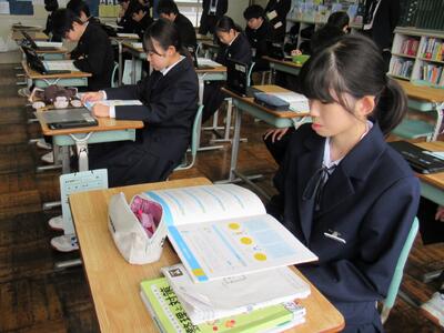 3年生の授業(1組:国語・英語、2組:総合的な学習の時間・美術)の様子です。