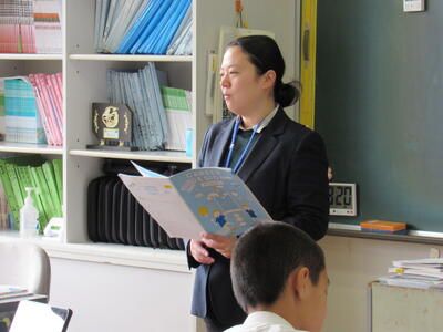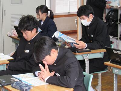 『海洋プラスチックについて』の英文を読み取る学習です。単語や文法に気を付けながらしっかりと音読して、理解を深めています。