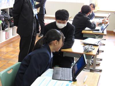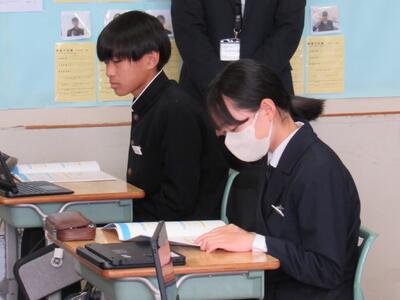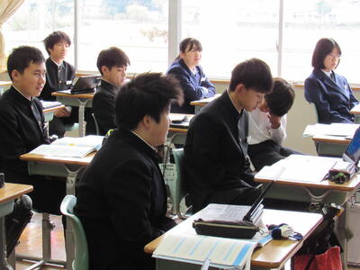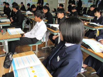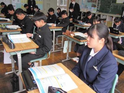 1年生の授業(1組:総合・数学、2組:総合・音楽)の様子です。