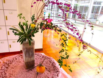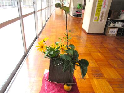 玄関等に大戸地区の坂下さん(今回は坂下さんのお友達)が定期的に季節の花を生けてくれています。本当に有り難いことです。生徒の皆さん、足を止めて季節の花々に心を和ませてみてはどうでしょうか。