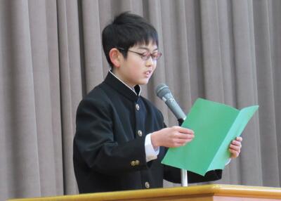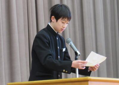 令和8年初めの全校集会が行われました。校歌斉唱の後、各学年代表生徒から新年の抱負が発表され、思いをしっかりと伝えることができました。生徒の皆さん、自分の抱負を具体的にしっかり持って、新年をスタートしましょう!