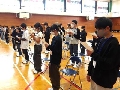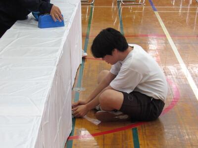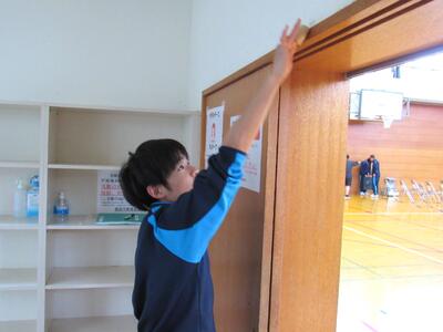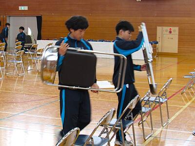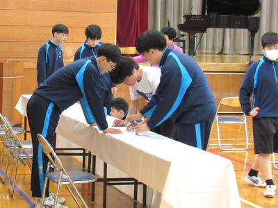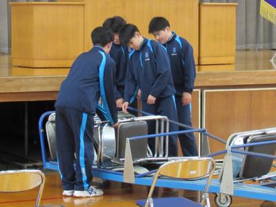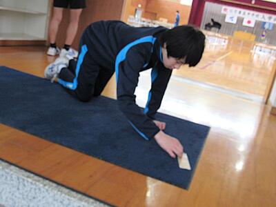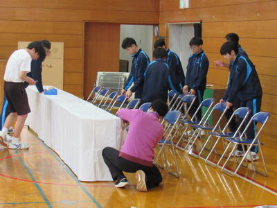 明日8日(水)の入学式に向けて、午後から会場の準備を行いました。一人一人が、新入生のために心をこめて活動しました。
