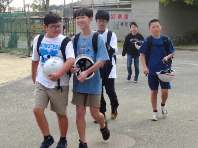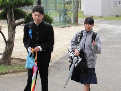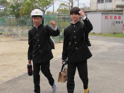 新入生の皆さん、明日は元気に登校してください。保護者の皆様、駐車場は正門に向かって右側の野球場の芝生になります。よろしくお願いします。