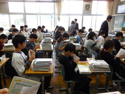 3月24日(火)3校時、年度末の大掃除を行いました。1・2年生共に、日頃は手の届かない所をきれいに清掃することができました。生徒の皆さん、家庭(玄関、トイレ、台所、風呂場など)でも、汚れに気が付いたら掃除ができるといいですね。